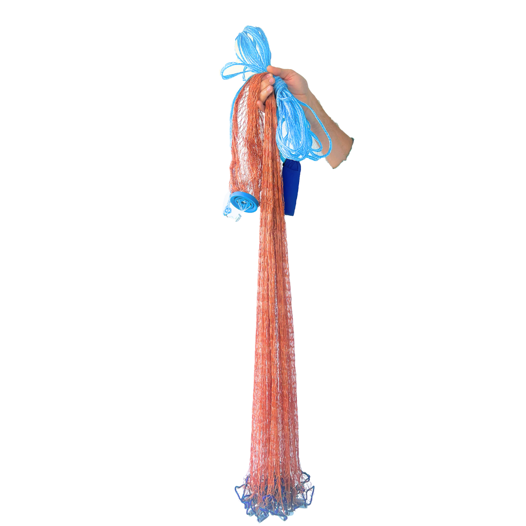 Está diseñada para capturar peces de tamaño pequeño a mediano (carnada) mayores a 2 cm por 2 cm. Tamaño de la maya 2 cm x 2cm.