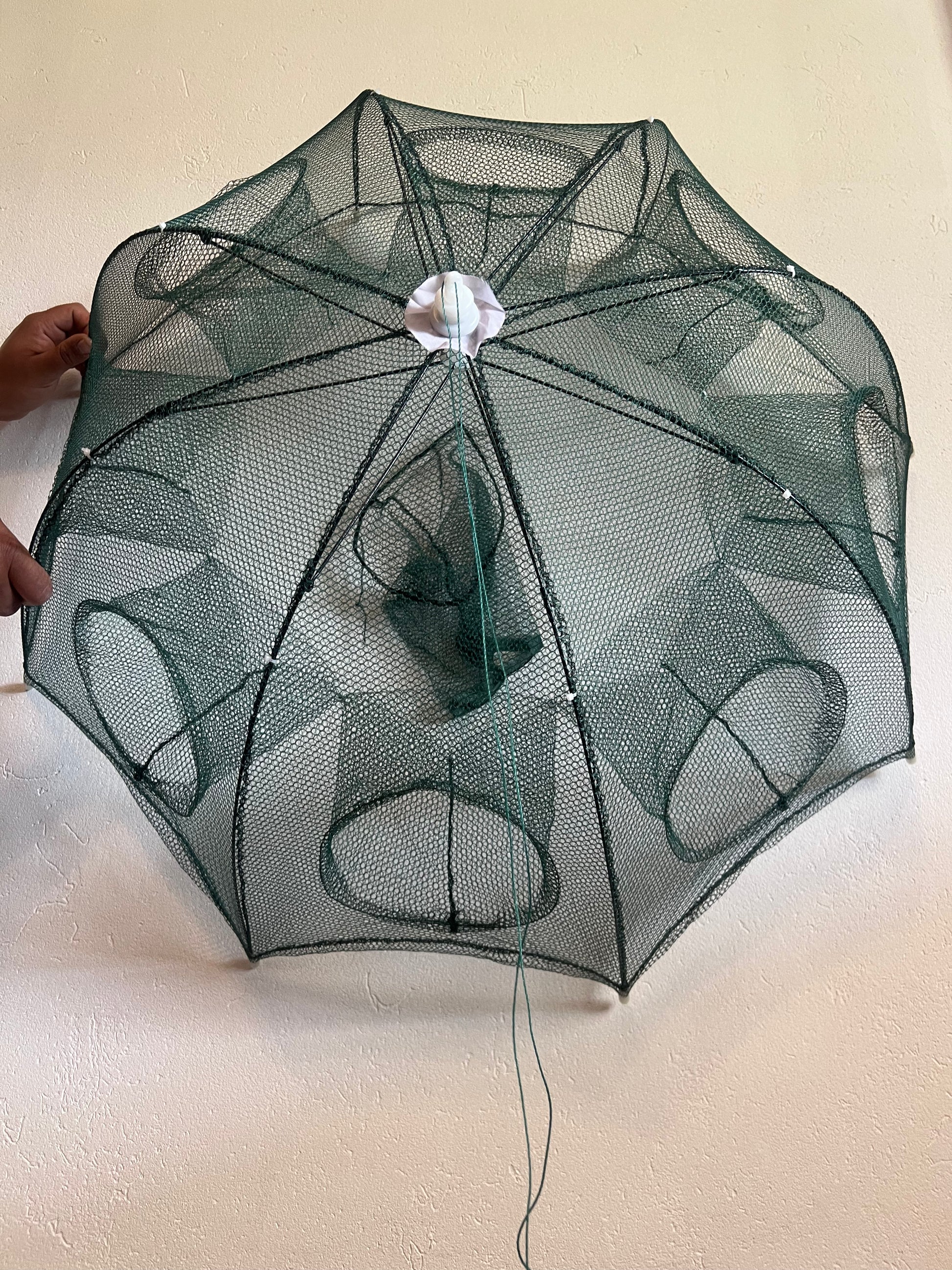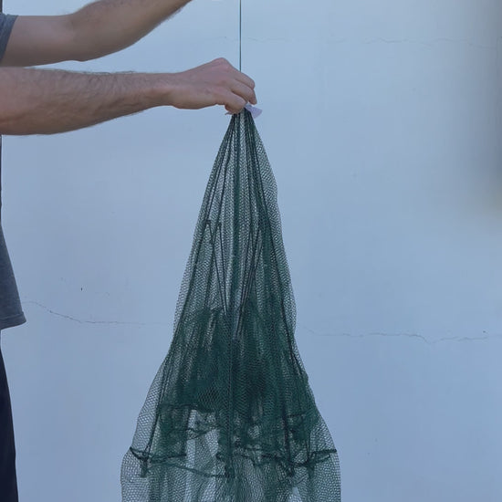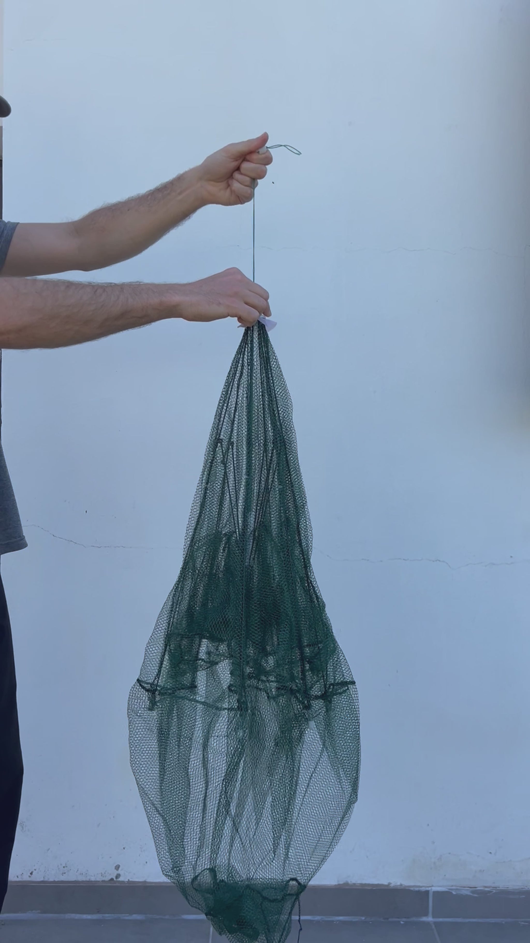 Está diseñada para capturar peces de tamaño pequeño a mediano (carnada) mayores a 2 cm por 2 cm. Tamaño de la maya 2 cm x 2cm.